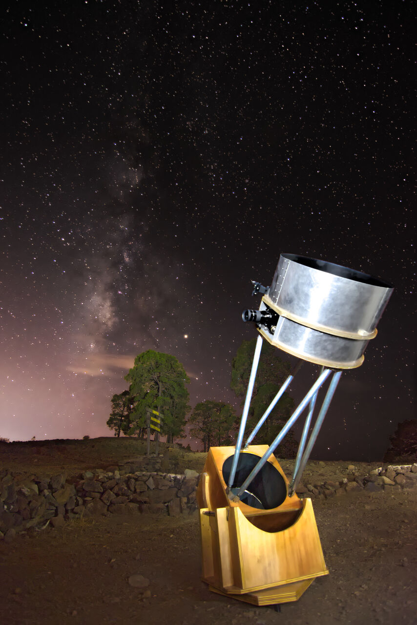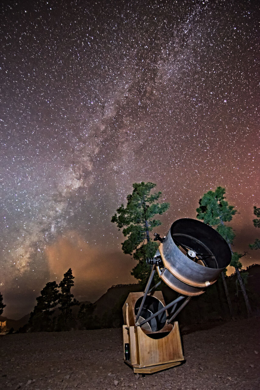 Depending on the clouds, winds and observable objects we will take you to the best observing point in Gran Canaria and mount a huge Dobsonian telescope for every 8 guests.